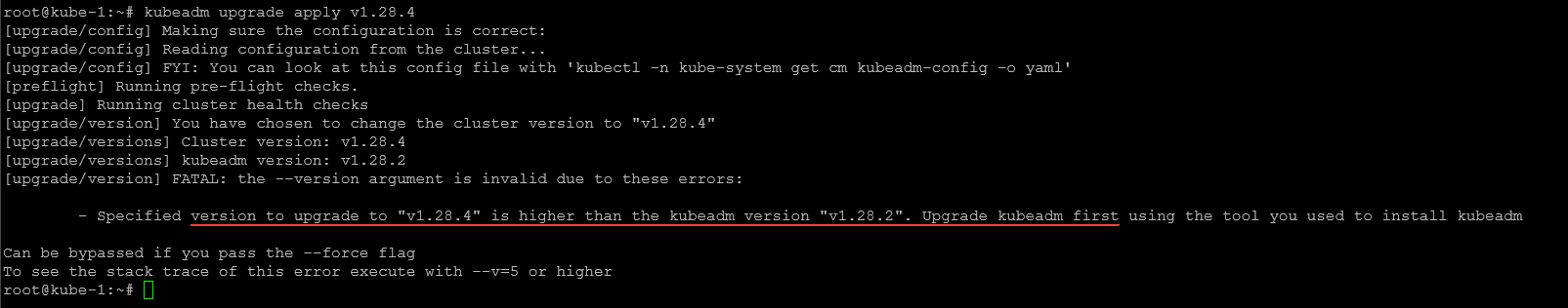This command upgrades your control plane components to the version you tell it. Replace v1.28.x with the desired Kubernetes version.