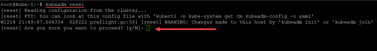 Use this command to remove all Kubernetes components installed by kubeadm. It’s a useful step for starting over or cleaning up if you have an issue or errors. This is a great tool for lab environments where you want to reset the cluster and if you forgot to take a snapshot on your Kubernetes cluster host virtual machines and you have an error state.