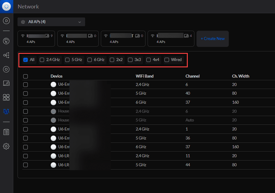 As you can see below, I have the new Radios menu selected and you can see the filtering at the top of the device list. The options are: