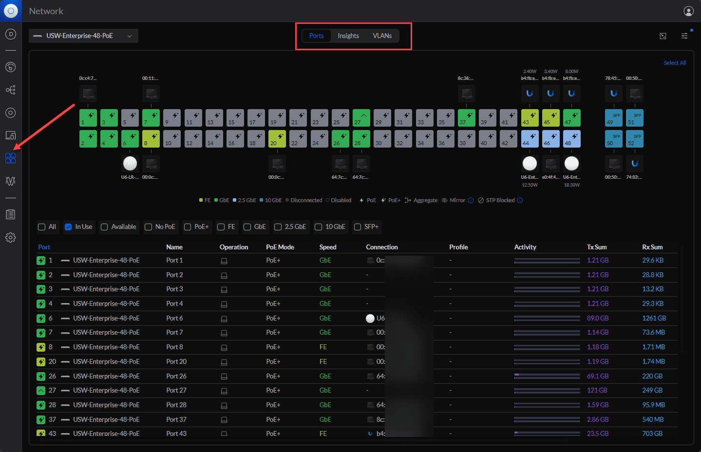 The Unifi Network Application 8 has an improved port management system for devices running Unifi OS 3.1.6 or newer. The new port management system helps speed up the management process across multiple network devices, including the Unifi Network Server.