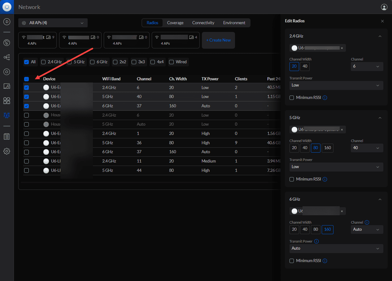 - Also, you can change the radio settings on multiple access points at the same time, which will be an excellent new enhancement for larger environments compared to the regular unifi network application in previous versions.