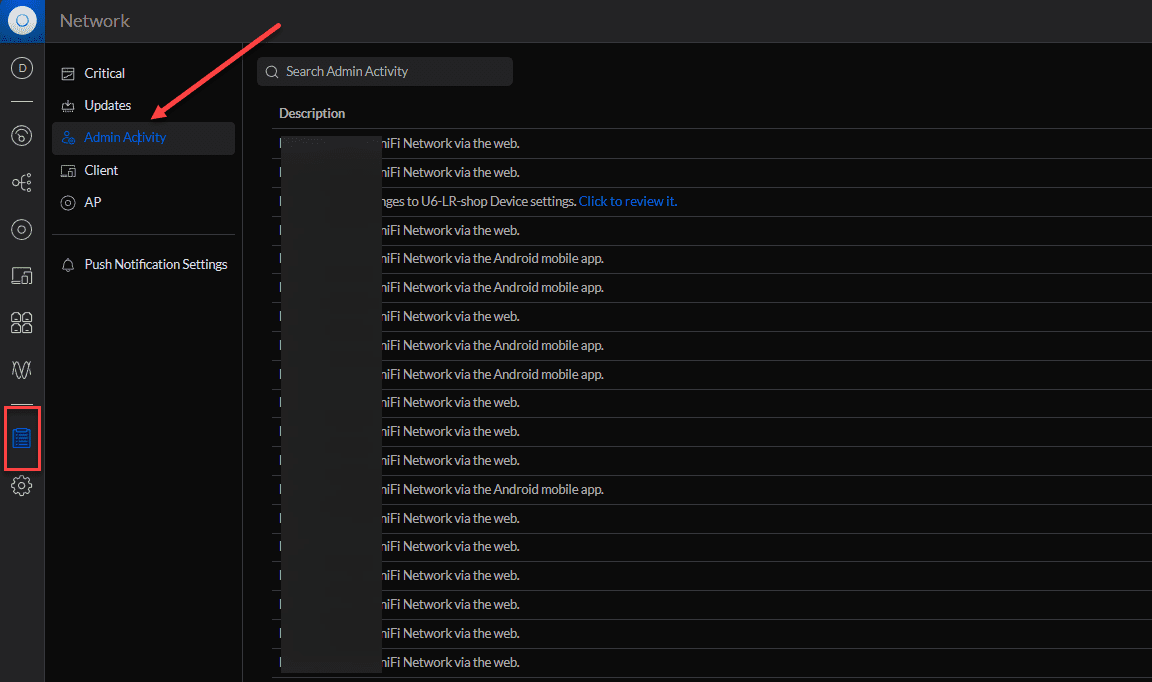 With the 8.0.24 release, Unifi has added the Admin Activity log area to get a detailed look at changes made across the Unifi network application, even from mobile devices.