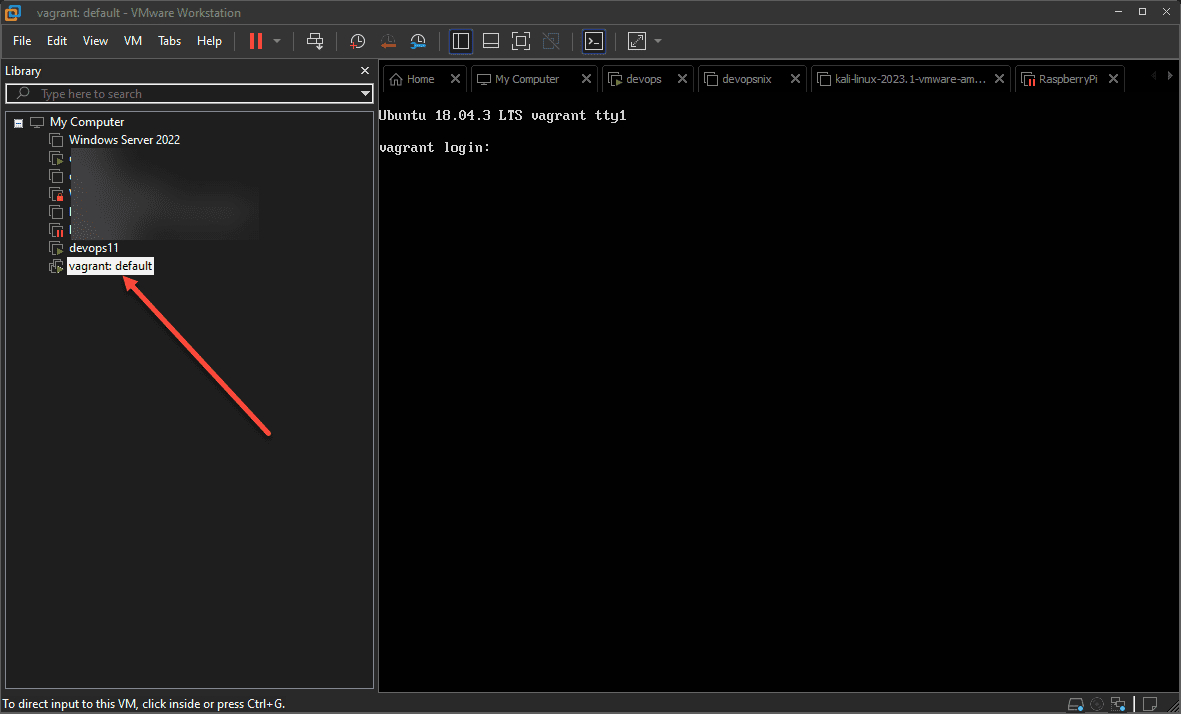 After adding the configuration, the VM appears in the VMware Workstation GUI after we issue the vagrant up command.