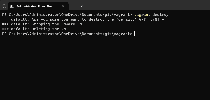 If you want to get rid of the virtual machine after you are done, you can issue the following command: