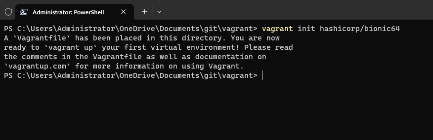 First, we need to run the vagrant init command. This creates the vagrant file, which is the blueprint for the virtual machine.