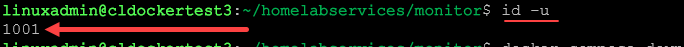 I needed to get the ID of the user I was running the Docker-Compose command under. To do that, use the command: