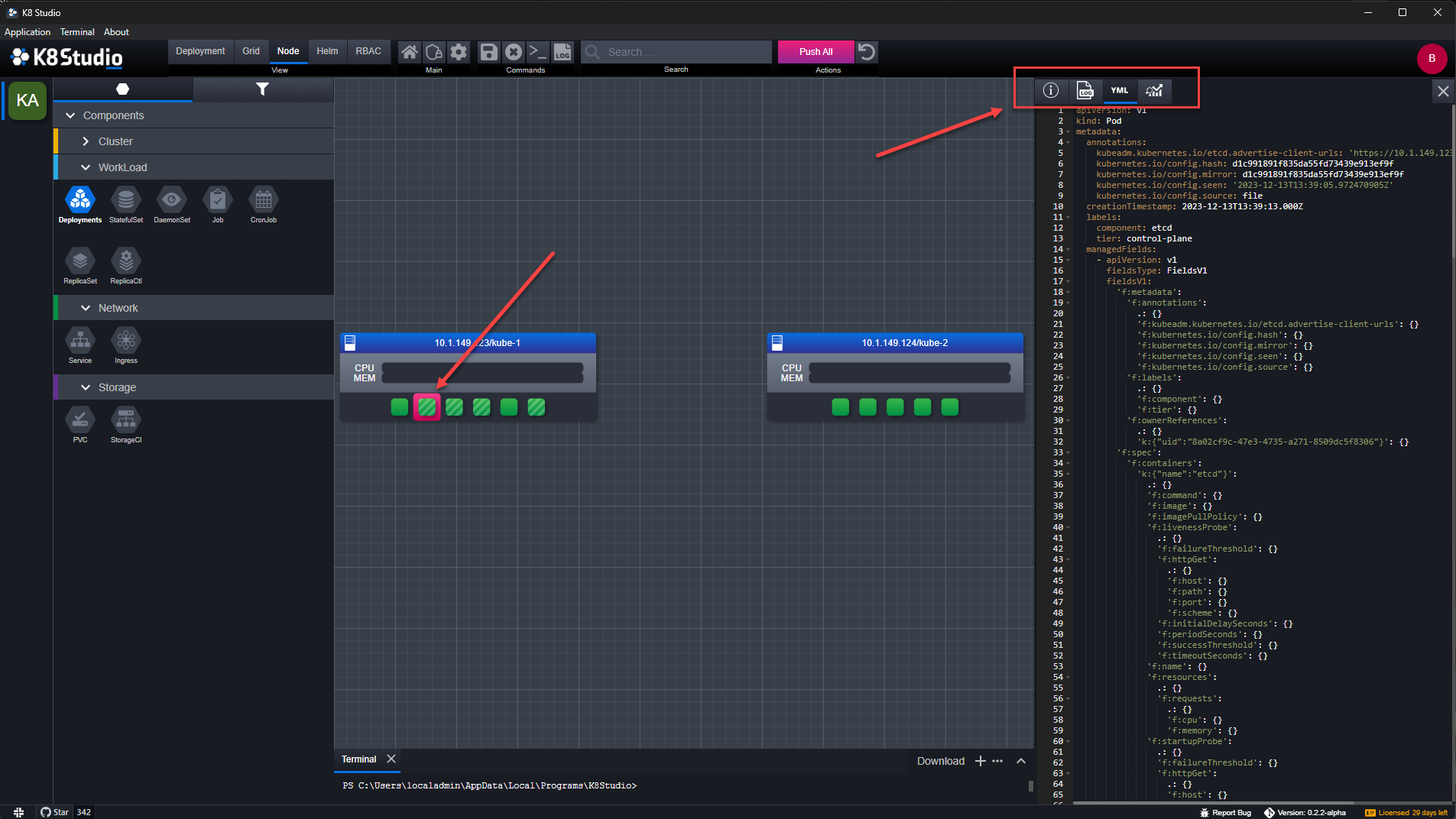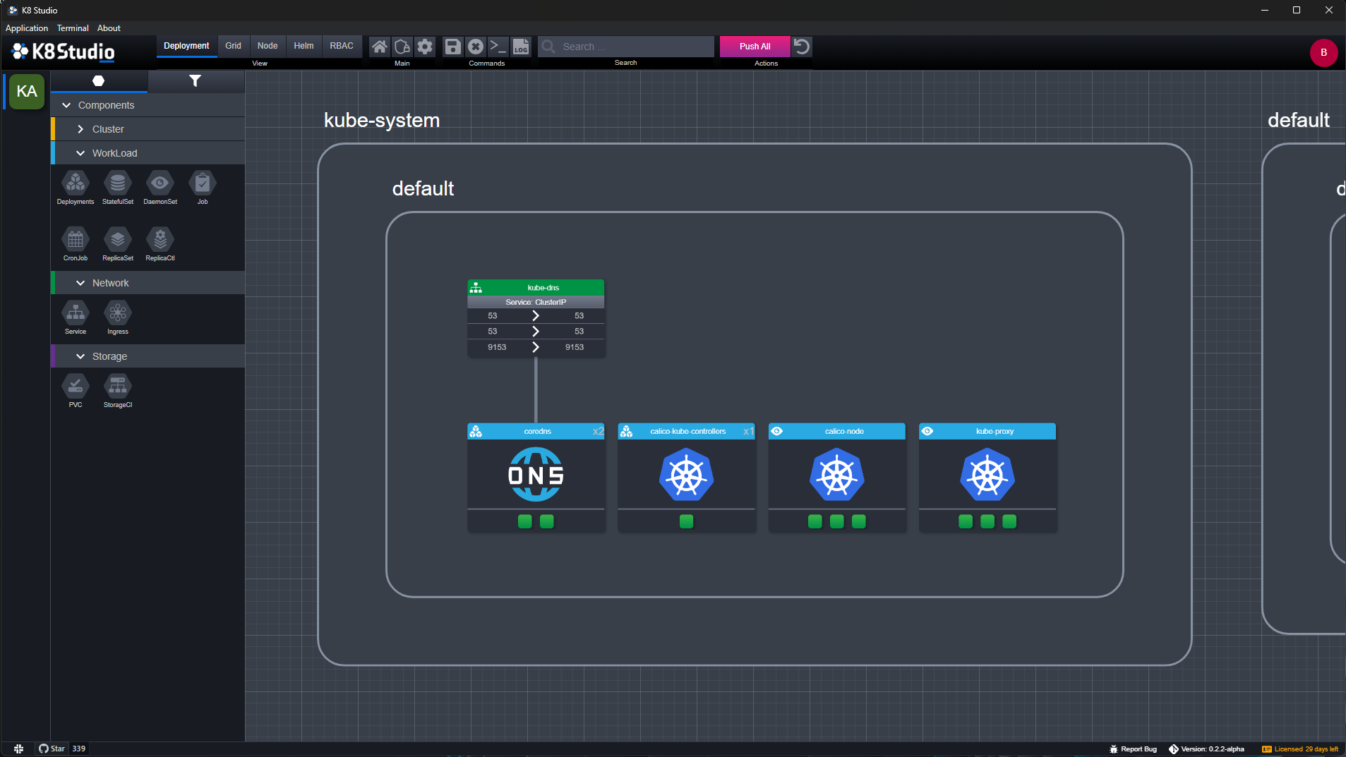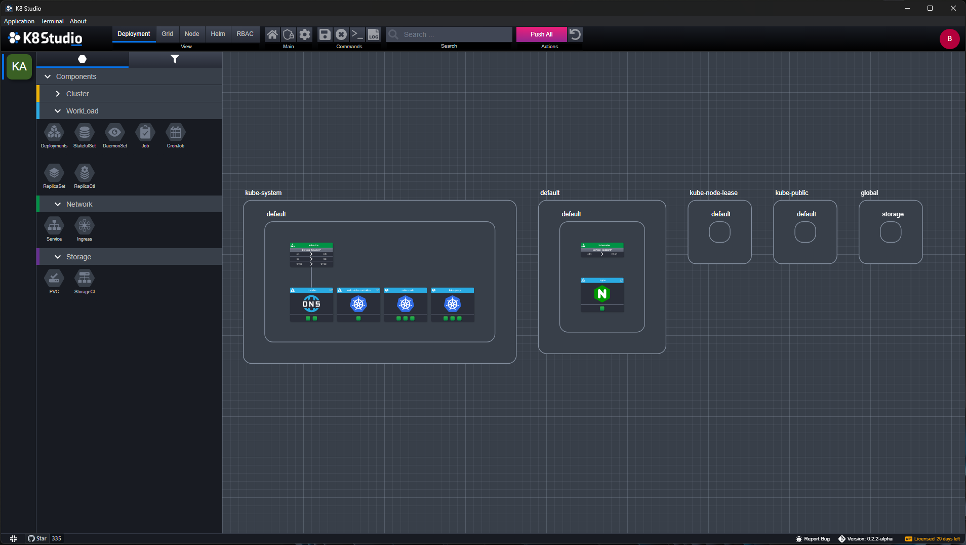 K8Studio has a unique node view with a comprehensive graphical representation of your Kubernetes nodes. I like the way it makes it easy to see the structure and status of deployed resources and Kubernetes objects on your Kubernetes nodes.