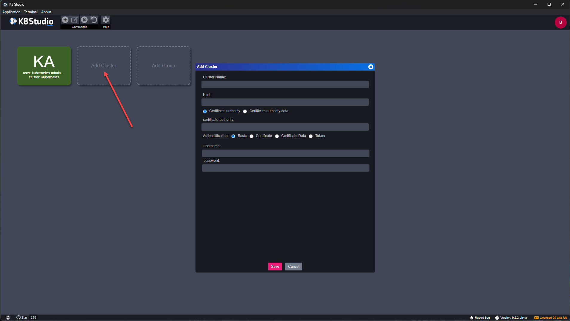 Like some of the other Kubernetes IDE tools, K8Studio makes it very easy to work with multiple clusters without worrying about manually changing contexts, etc. It will read from your kubeconfig file and present you with the clusters found there. You can add multiple clusters.