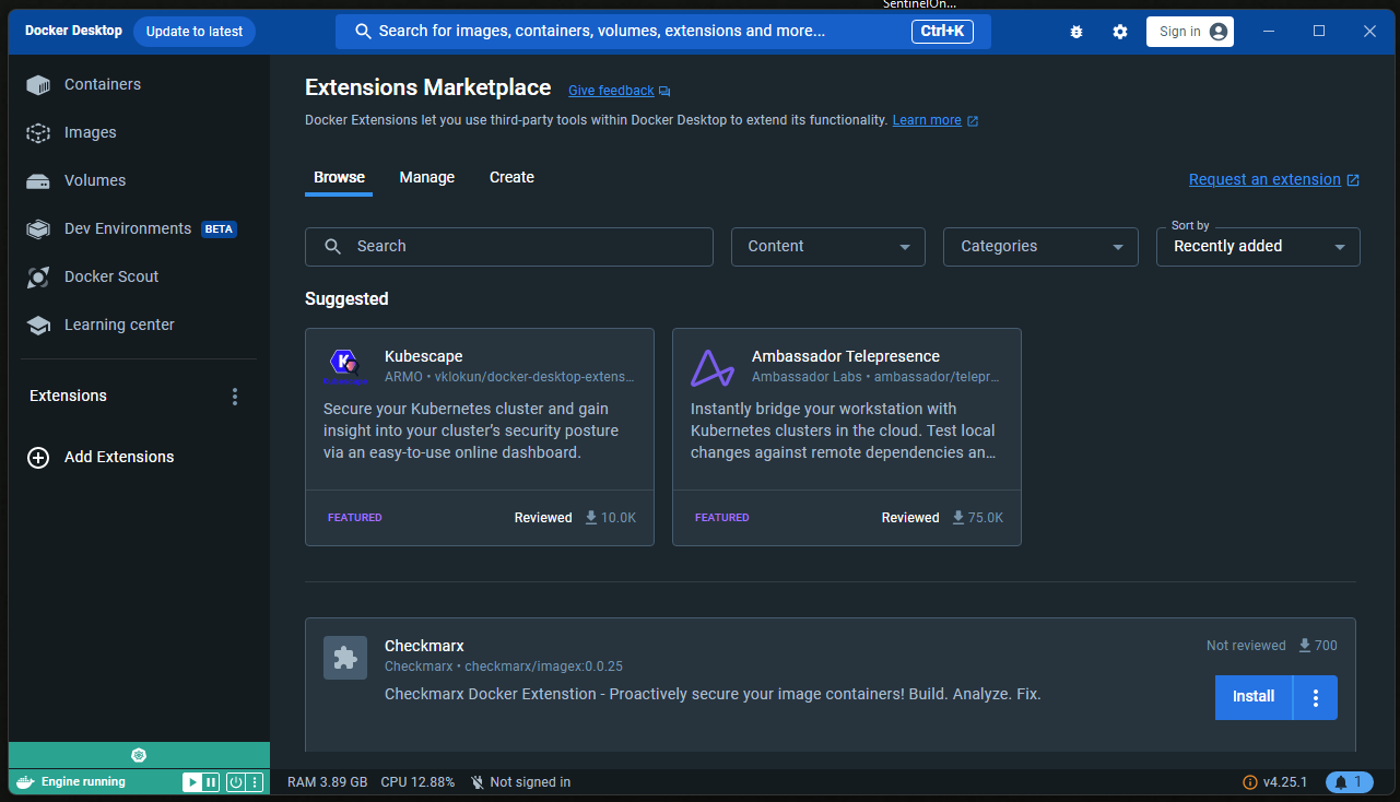 The Docker extensions catalog is extensive and contains many extensions you can add to your Docker Desktop installation.