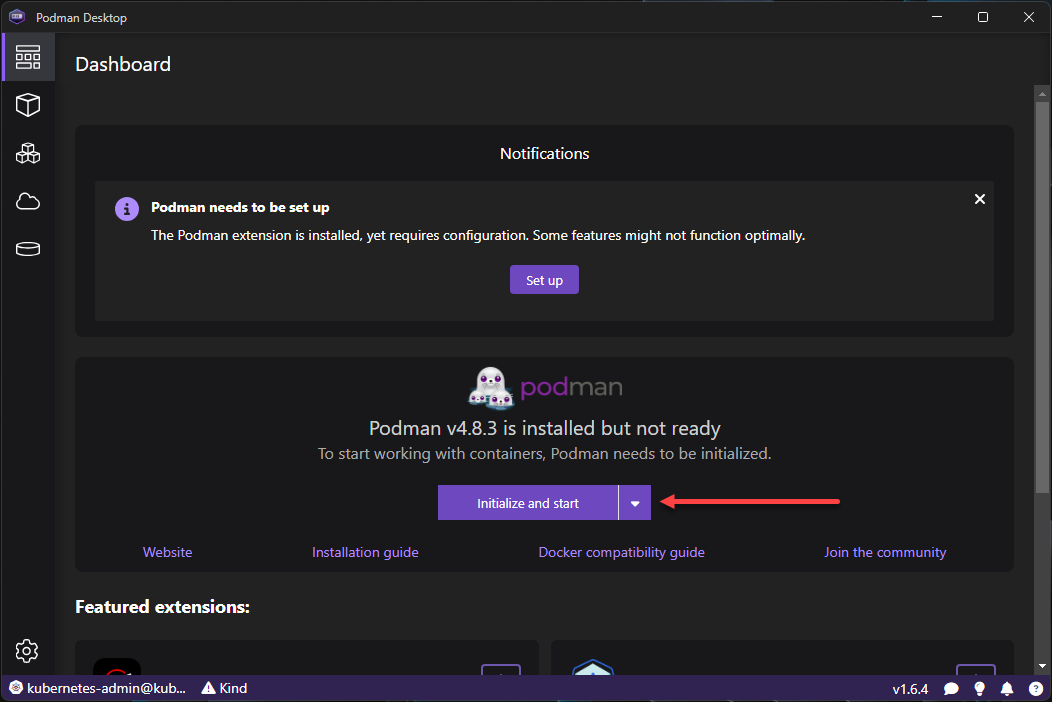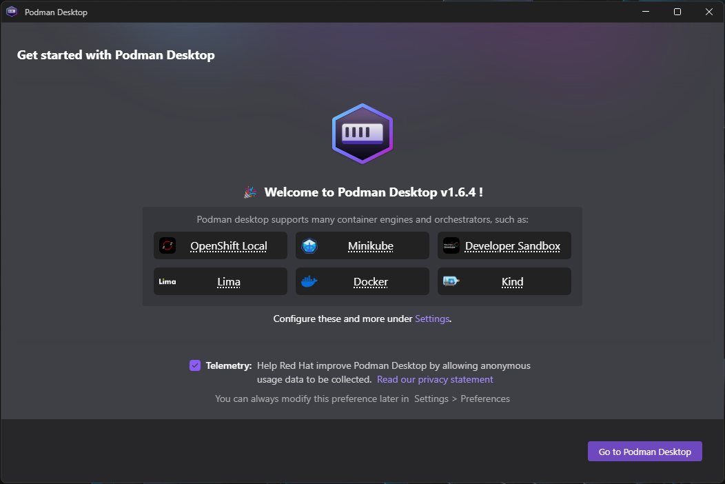 After you install Podman desktop, there is some initial configuration you will need to perform.