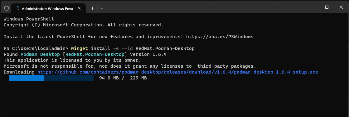 Also, for the Windows operating system you can now use the winget tool to install Podman Desktop. Use the following winget command:winget install -e –id RedHat.Podman-Desktop