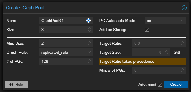 Below, I have created a cluster with 4 Proxmox hosts running Ceph shared storage.
