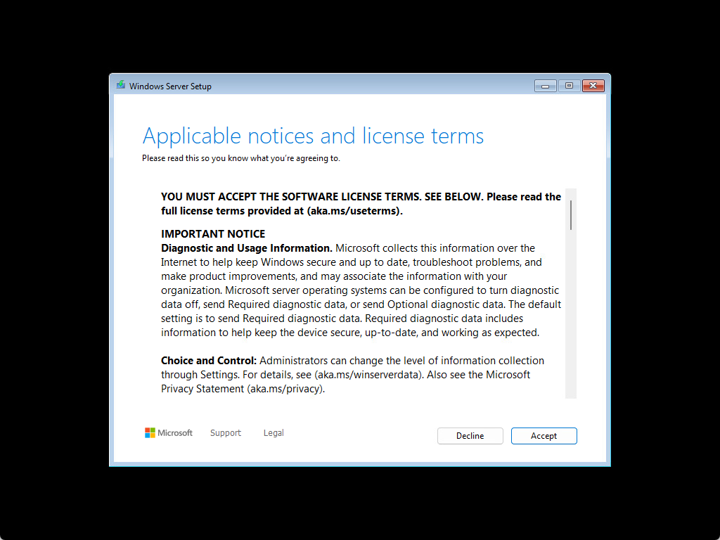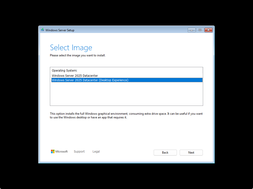 - Windows Server 2025 Datacenter – this is Server Core installation options
