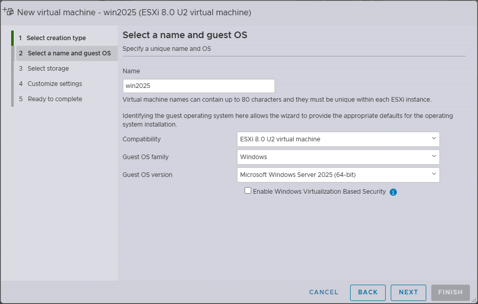 If you are looking to install Windows Server 2025 in VMware vSphere, you can connect directly to your ESXi 8.0 Update 2 host and you will see an option for Guest OS version for Windows Server 2025 (64-bit). In vCenter, you won’t see this option yet.