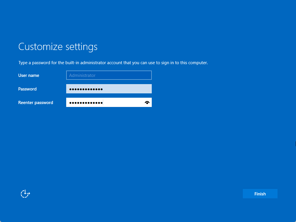 Set the password for the Administrator account.