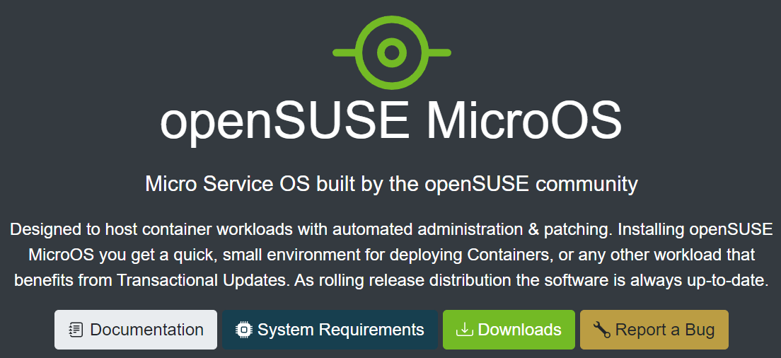 Download openSUSE MicroOS here: openSUSE MicroOS.