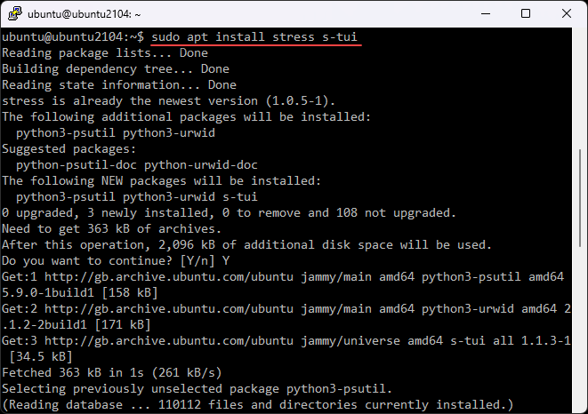 Installing S-TUI in Ubuntu is easy. You can do that with the single command: