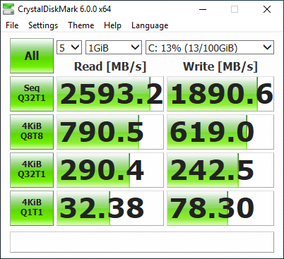 Generally, there are a large number of benchmarking tools and disk speed tests. You can use the more traditional type tools like the CrystalDiskMark utility. Below is a screenshot of the results of a disk test I had ran quite some time ago. The version is likely old in the screesnhot at this point.