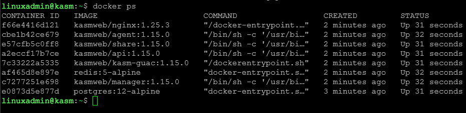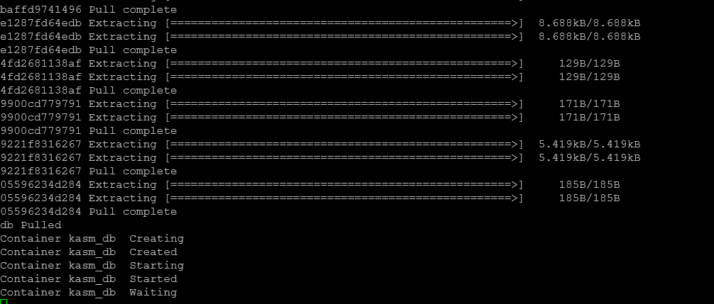 It will then begin pulling down the containers for the Kasm solution. Kasm does all the heavy lifting for you like copying files, installing Docker, setting up networks, installing versions of software needed for the solution, etc.