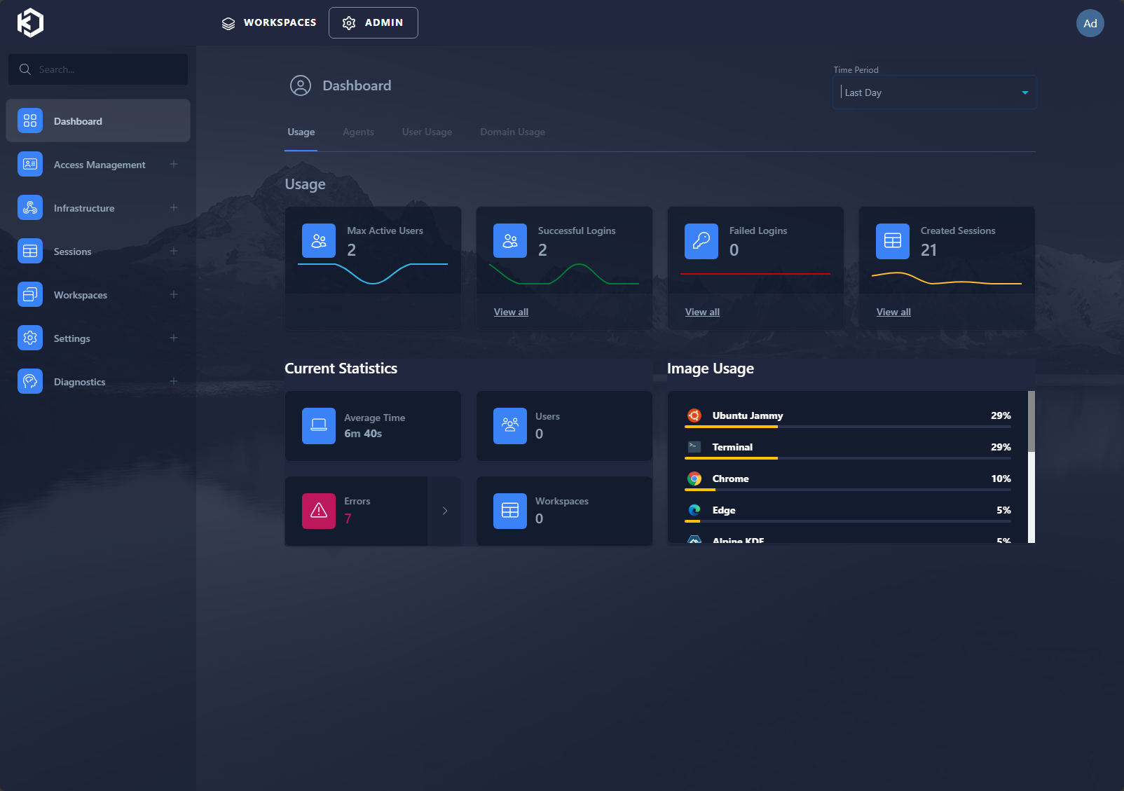 In a browser, if you browse to the IP of your Kasm host, you will see the dashboard where you will need to login with the admin user and password.