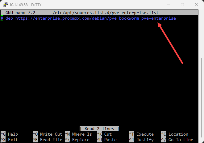 #/etc/apt/sources.list.d/pve-enterprise.list From: deb https://enterprise.proxmox.com/debian/pve bookworm enterprise To: deb http://download.proxmox.com/debian/pve bookworm pve-no-subscription