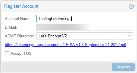 You register your account in the Datacenter under ACME.