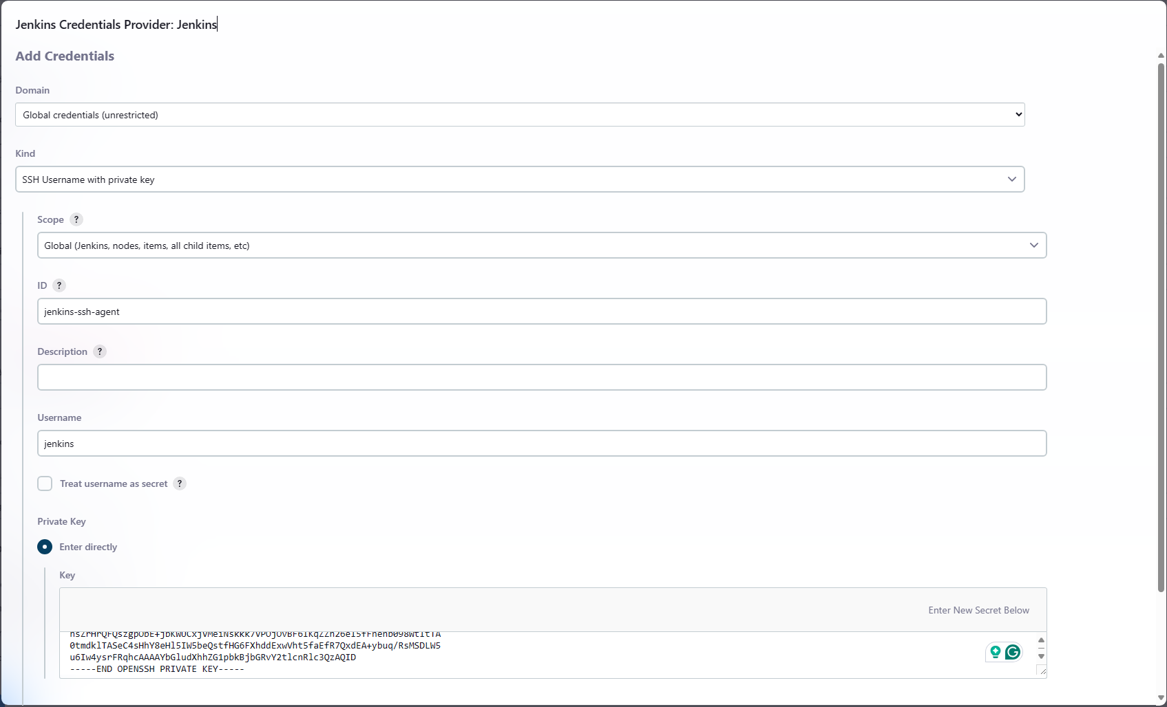 Now we need to add the private key to our Jenkins controller.