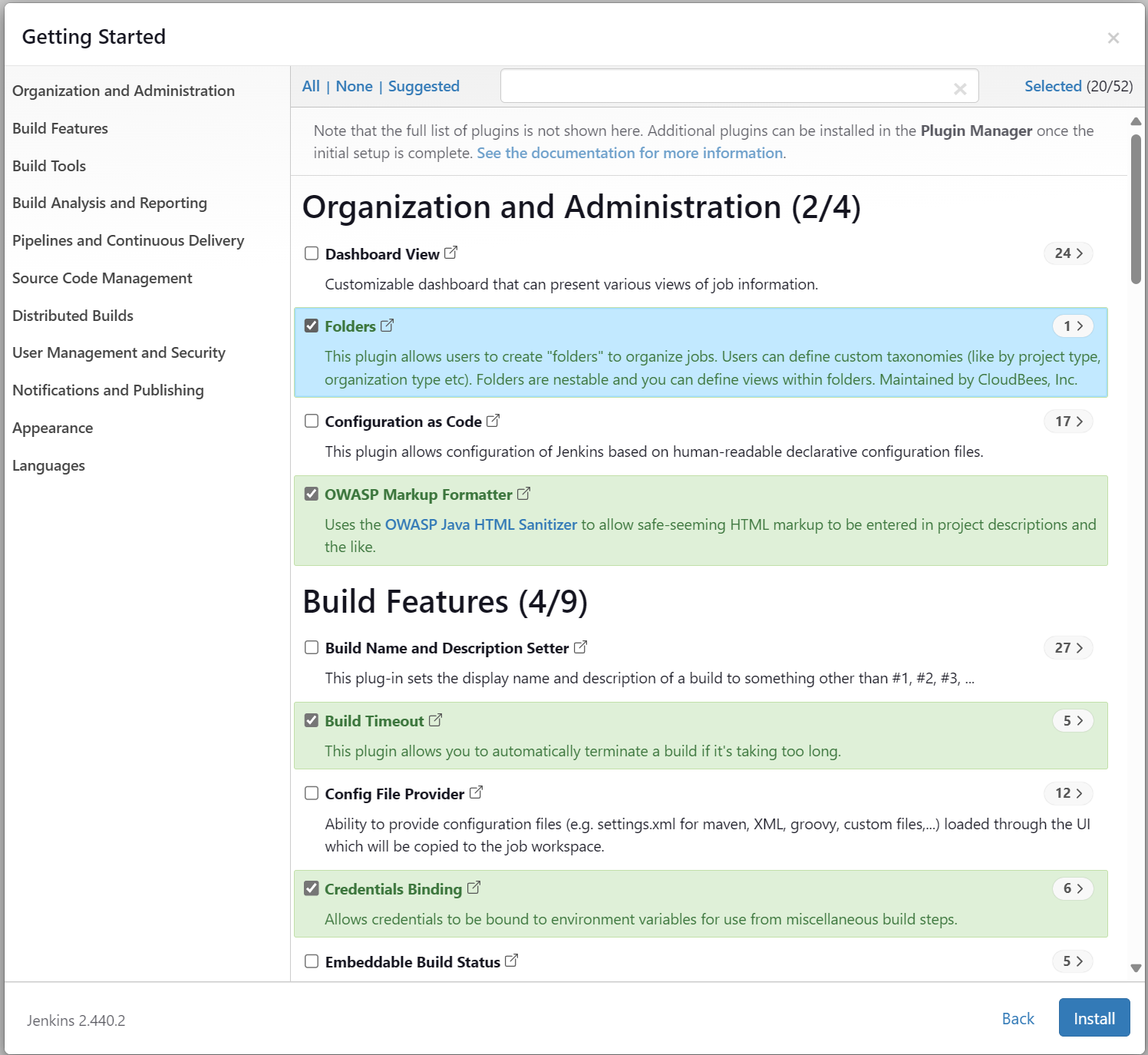 If you choose to select plugins to install, you will need to select the plugins you want to install. When you have what you want selected, click Install.