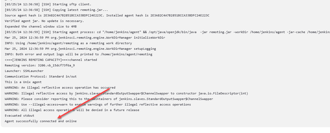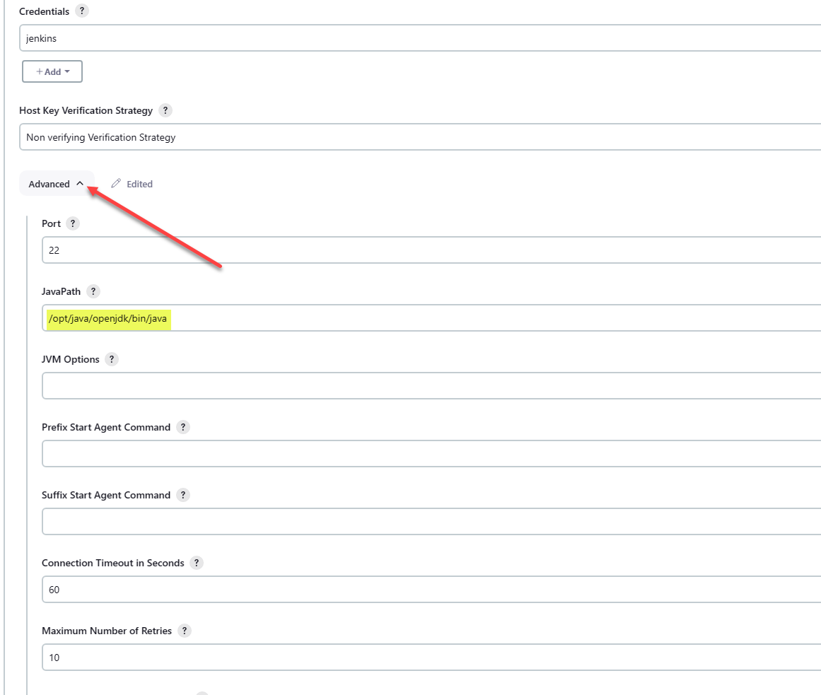 - image: Specifies the Docker image to use for the agent. I am using the jenkins/ssh-agent:jdk11 image that is a base agent with Java for connecting to Jenkins.
