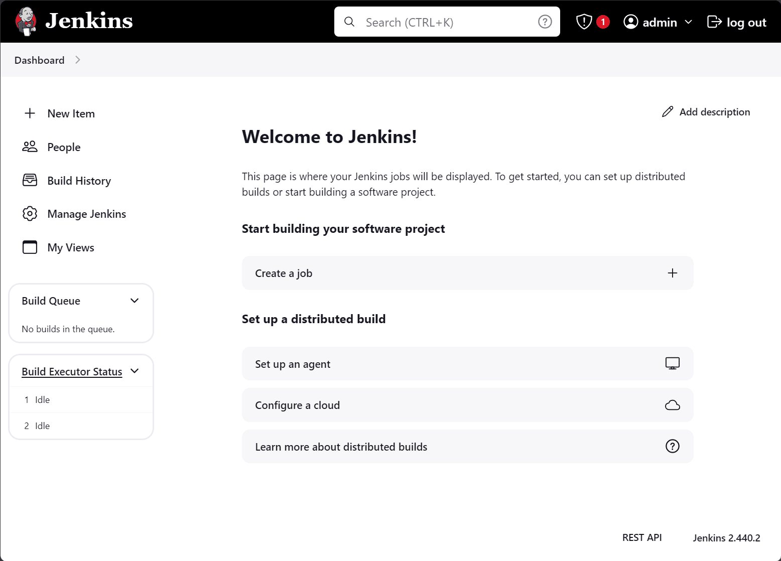 Now, we have logged into Jenkins with the admin user we created.