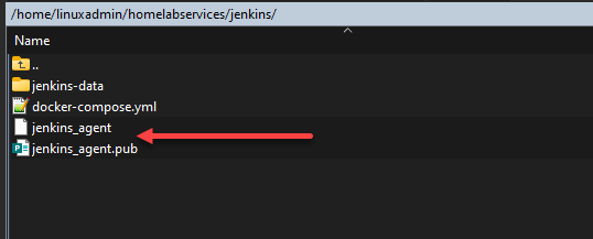 Copy the contents of the public key (one with .pub extension) to your Docker compose file for the Jenkins agent: