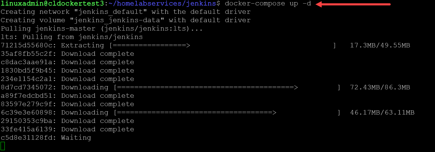 Launching Jenkins: Navigate to the directory containing your docker-compose.yml and execute the command: