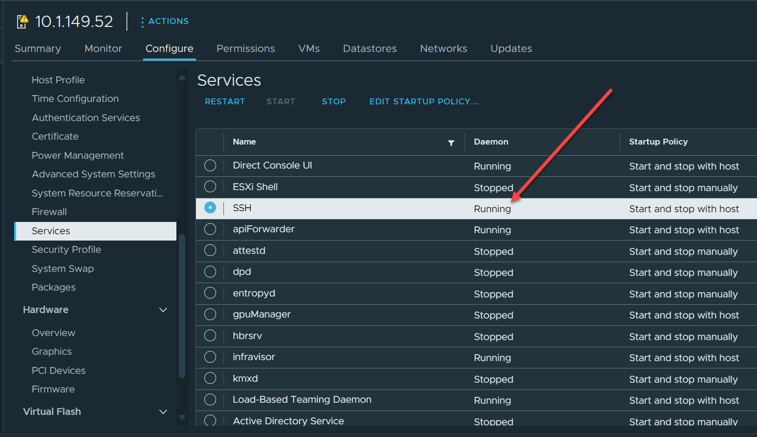 How many environments have you see with dozens of ESXi servers with SSH enabled? Scary right? SSH is fine to enable temporarily if you need it for a specific reason or for troubleshooting. However, do not leave SSH enabled on production ESXi hosts.