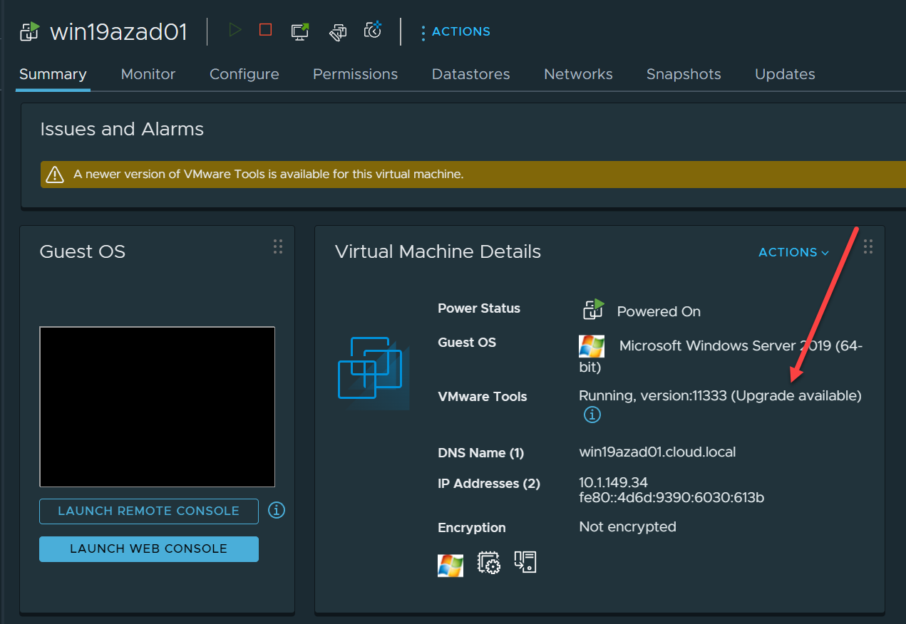 Keeping VMware tools updated is extremely important from the standpoint of keeping the environment secure and your guest virtual machines performing as expected. VMware Tools is the special package you install in your guest operating system to allow ESXi to interact with the guest OS’es easily and effectively. It provides special functionality and allows for the extraction of information from the guest OS and presentation to ESXi or vCenter Server.