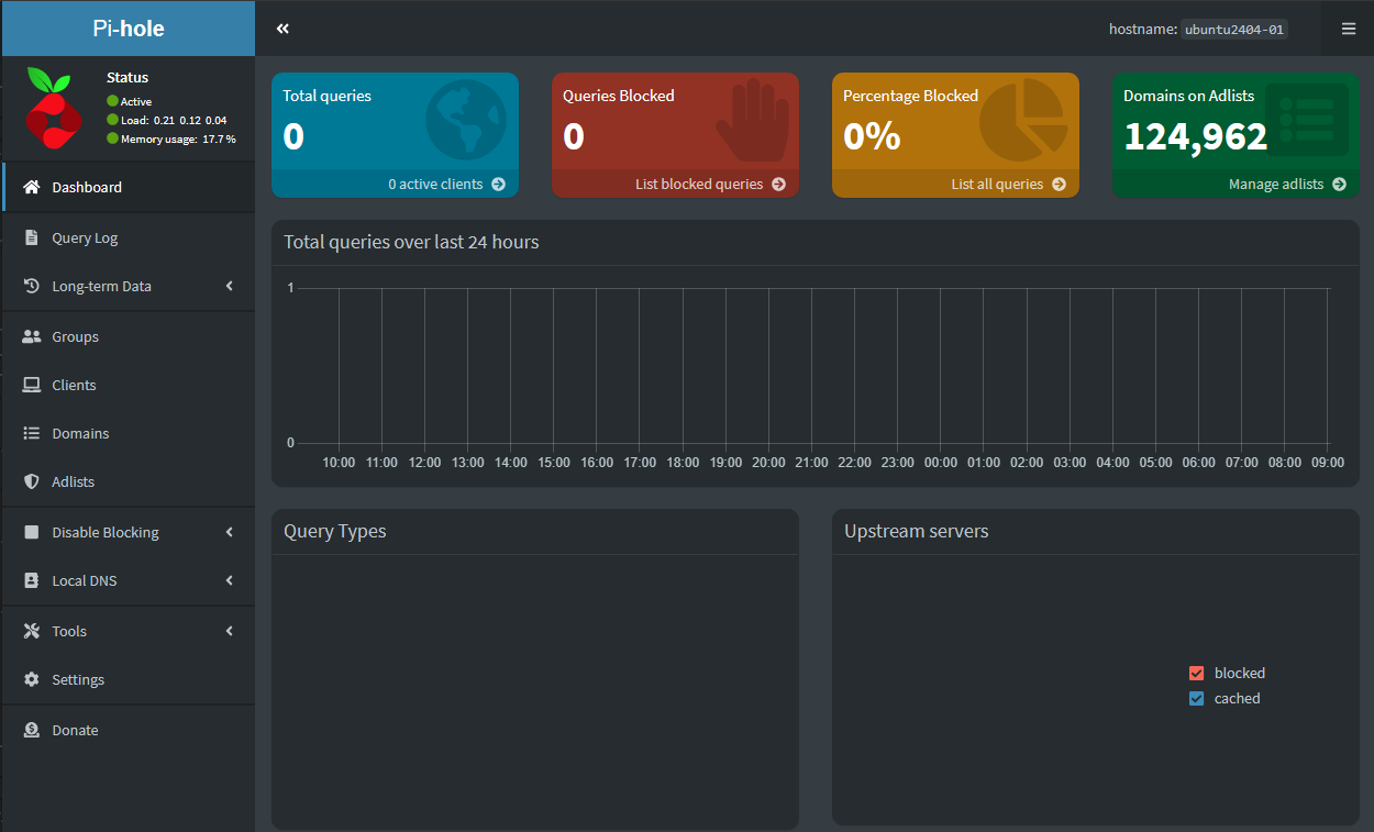 You can start configuring your Pi-Hole installation on Ubuntu 24.04 LTS by browsing to your Pi-Hole web admin dashboard.