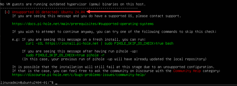 We need to apply a command line parameter to install Pi-Hole for testing on Ubuntu 24.04 LTS beta:
