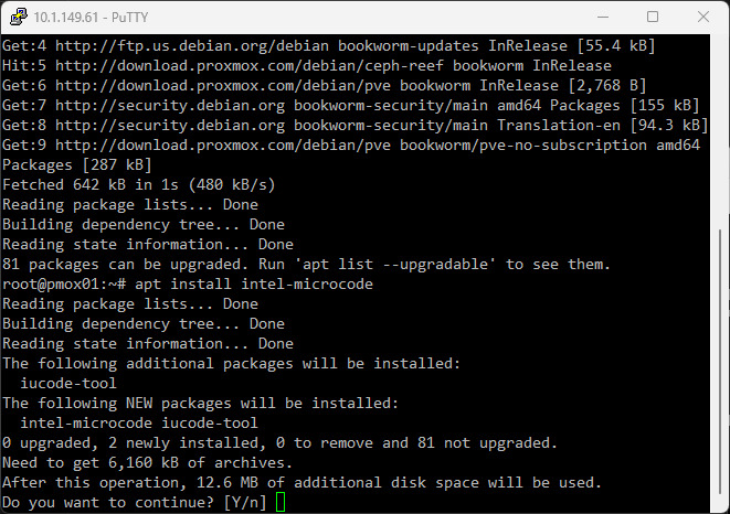 Below are the instructions for installing the microcode update on your Proxmox 8.1.x installation: