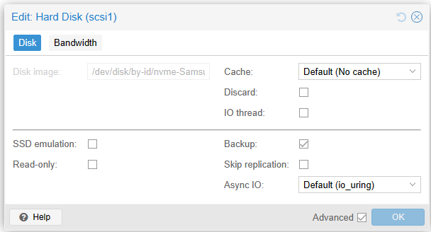 - Optimize Proxmox VM Settings: Adjust the cache settings and IO thread usage in the VM configuration to better suit the type of disk you are using. For SSDs, using a write back cache can improve performance.
