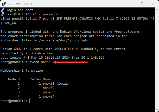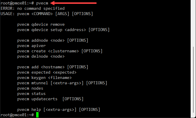 You can view the pvecm command by SSH-ing into one of your Proxmox cluster nodes and typing: