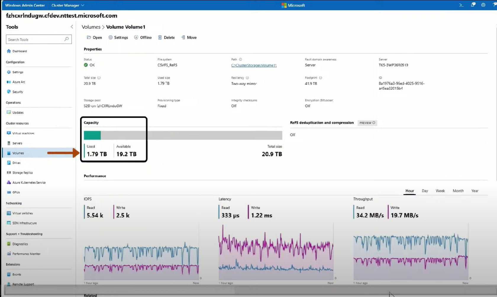 Below is a screenshot of Windows Admin Center and the benefits from deduplication and compression:
