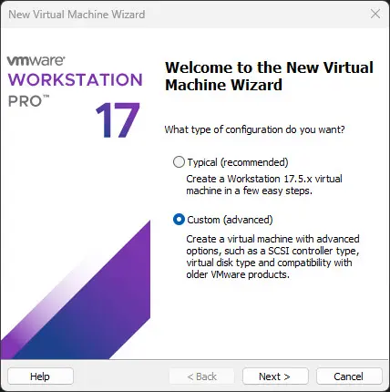 In VMware Workstation Pro, click on File > New Virtual Machine and the below wizard will launch.Here we are going to create a custom virtual machine for the Proxmox VE host.