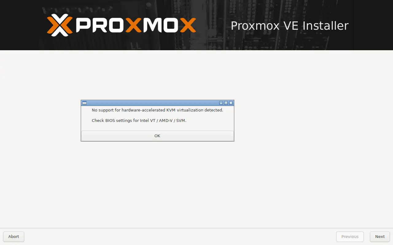 - Proxmox says there is “no support for hardware-accelerated KVM virtualization detected” – You need to enable nested virtualization for your VMware Workstation VM