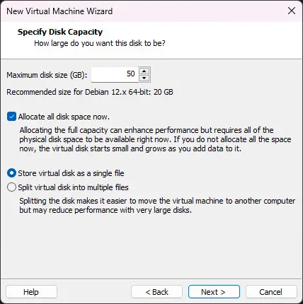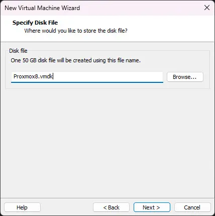 Name the new VMDK. By default it will just take the name of the VM you configured earlier.