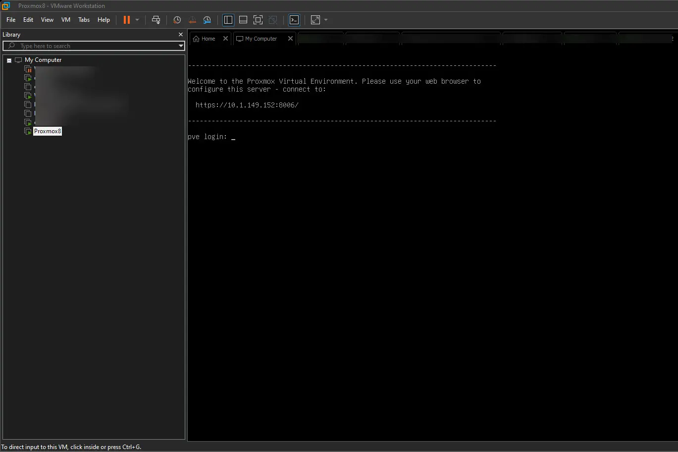 Once the installation process finishes, the VM will automatically reboot, and you should see a screen on the console that looks like the following: It should display the IP address followed by the Proxmox port of 8006.