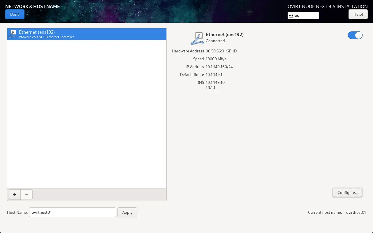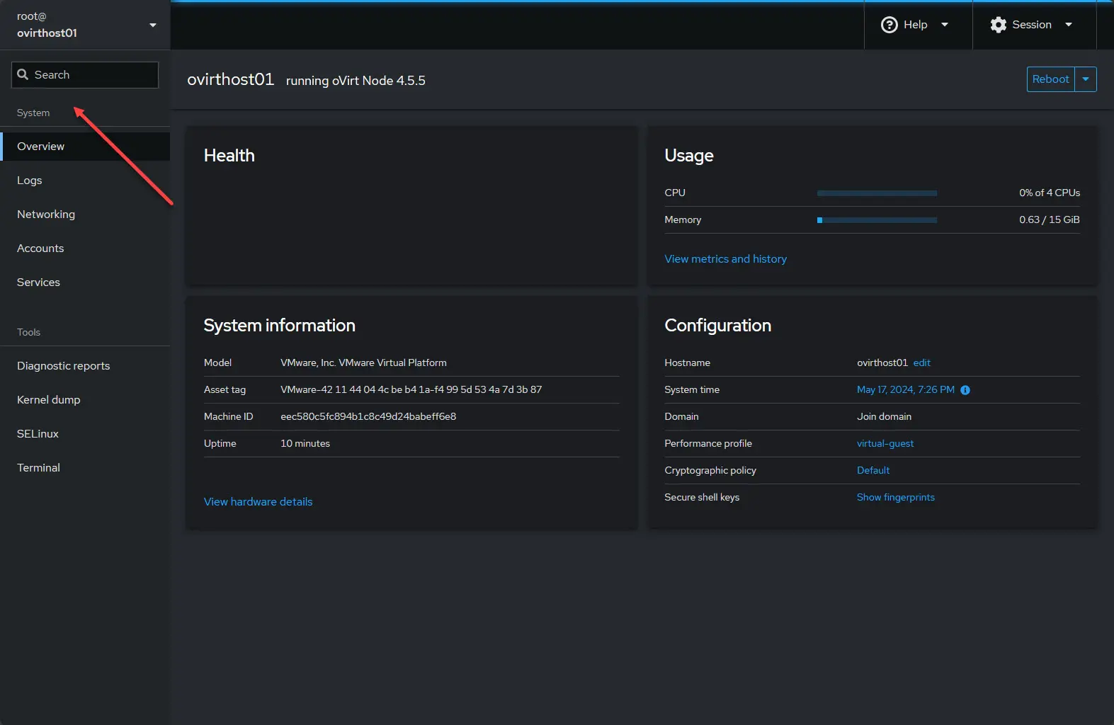 To get up and running with oVirt, I simply downloaded the oVirt node ISO from the link above, copied it to a VMware vSphere datastore and mounted this to a new virtual machine that I created in VMware for Red Hat Enterprise Linux.