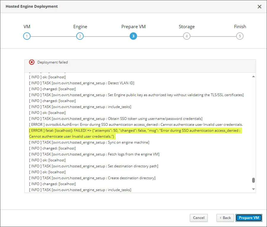 The error that I was never able to get past was the error below: Error during SSO authentication access _denied. There were many threads that I found covering this error. However, no real silver bullet answer. Many users seemed to have success reverting back to 4.4 install of oVirt instead of using 4.5, which I am using.