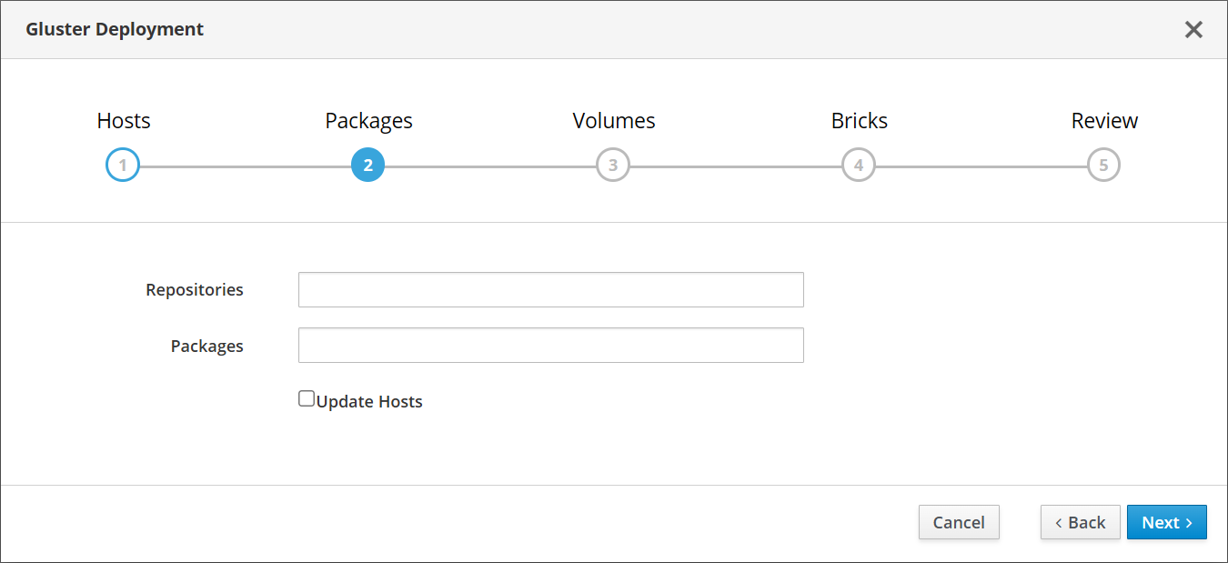 This will launch the Gluster deployment wizard. First, enter the FQDN of your host itself. If you get an error about the host not being in the Known_Hosts file, check out the forum post here: oVirt GlusterFS Host is not added in Known_Hosts.