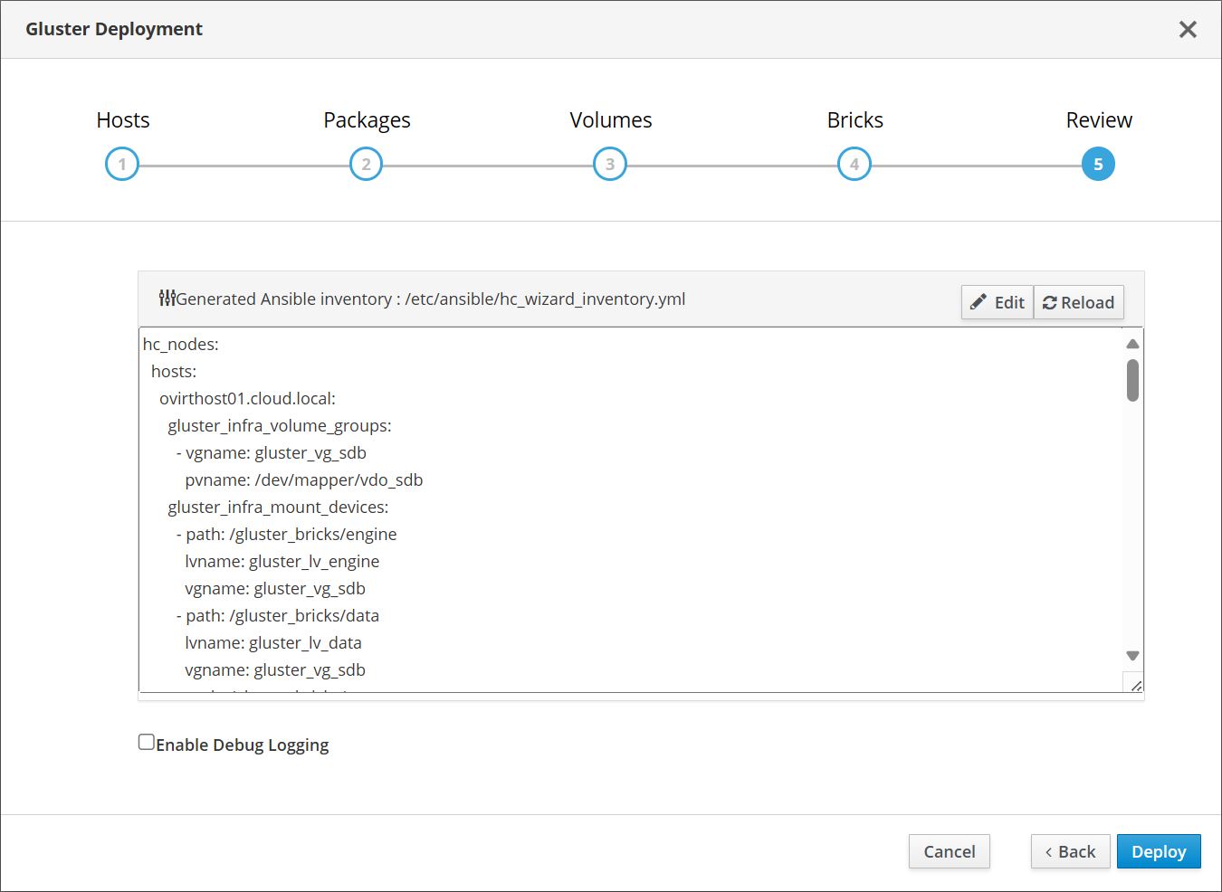 On this screen, I clicked the Continue to hosted engine deployment instead of the close button. Here I encountered an error that took some time to figure out. I kept seeing the deployment fail with creating the volume group.