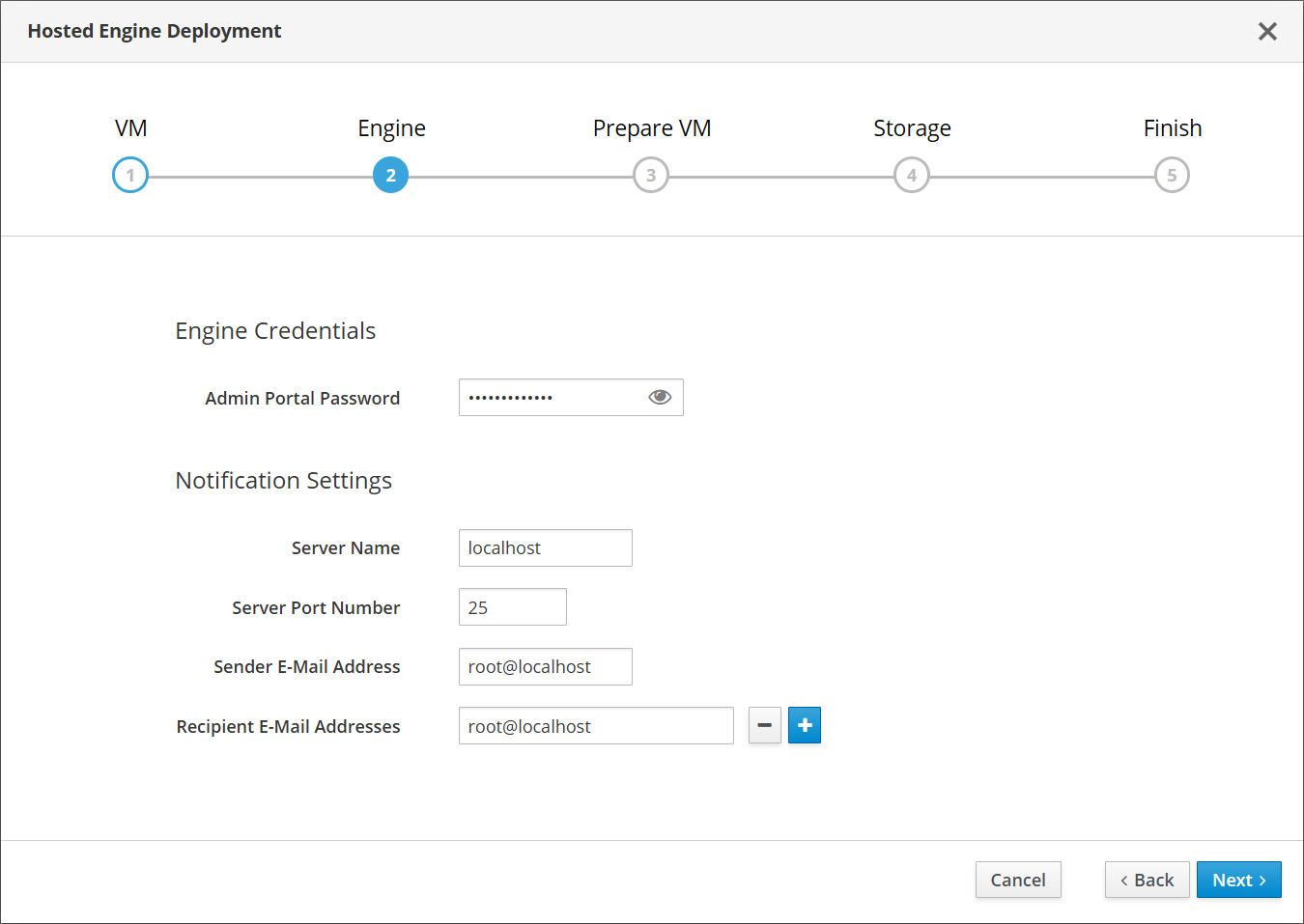 On the Engine screen, I set the admin portal password and left the email config as is.