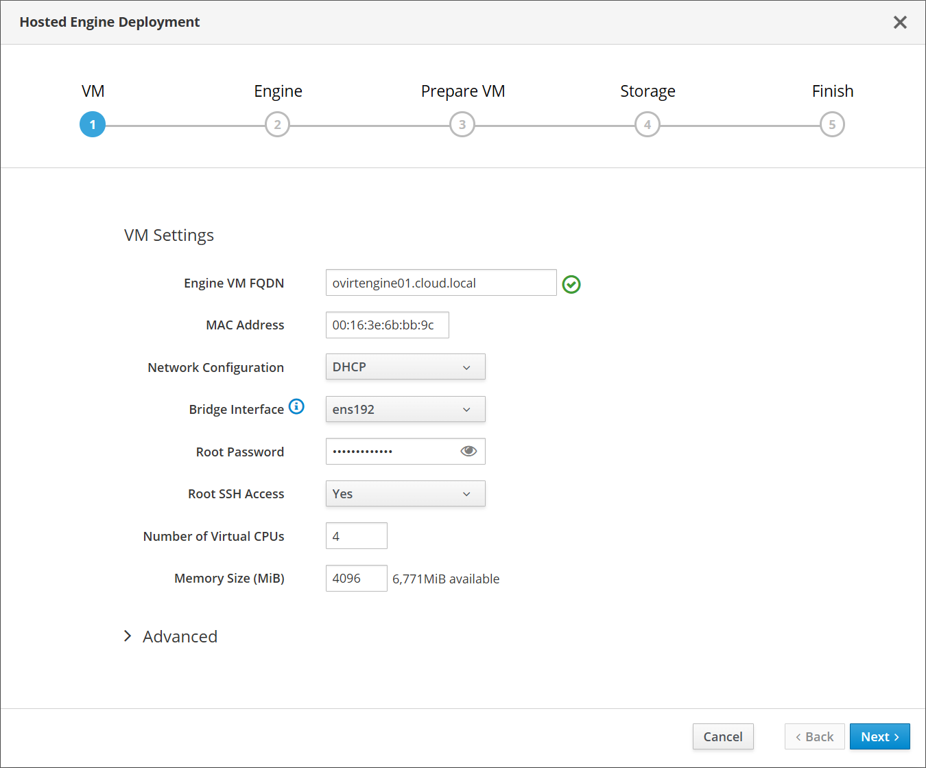 - I had an issue with the GPG signature on the hosted engine, worked around that with with dnf -y install ovirt-engine-appliance –nogpgcheck